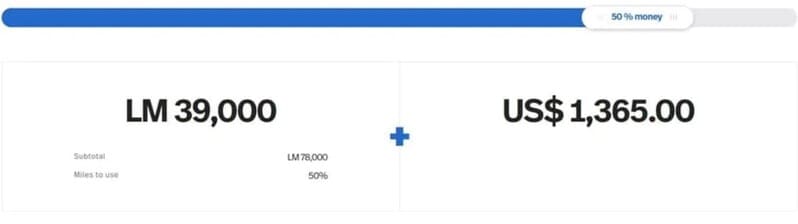 LifeMiles hat seine attraktiven LifeMiles + Money Option leider komplett entwertet. Jetzt könnt ihr Meilen im Buchungsprozess für 3,5 Cent pro Meile bzw. 350 Euro je 10.000 Meilen hinzukaufen. Dieser Wert ist fix und verändert sich nicht durch Veränderung des prozentualen Anteils an Geldzahlung. Das ist teurer als wenn ihr die Meilen einfach ohne Bonus hinzukaufen würdet (geschweige denn mit einem Bonus) und macht natürlich keinen Sinn mehr.